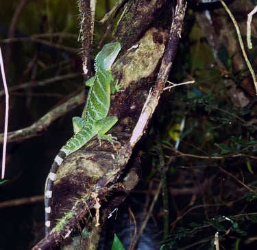 The impressive woodland near the national park centre was up for exploration. We hired a guide, and went for a four hour walk in the forest. The soundscape made me rater frustrated, not even knowing if the sounds came from an insect, amphibium, bird or mammal! Our guide claimed quite a few species by sound, but I only "accepted" the ones I could confirm myself.