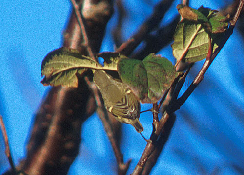 A Hume's Warbler was present at Fedje in Hordaland county on the 18th. and 19th. of October 2001. This was the second record of the species in the county, and only number nine in Norway.