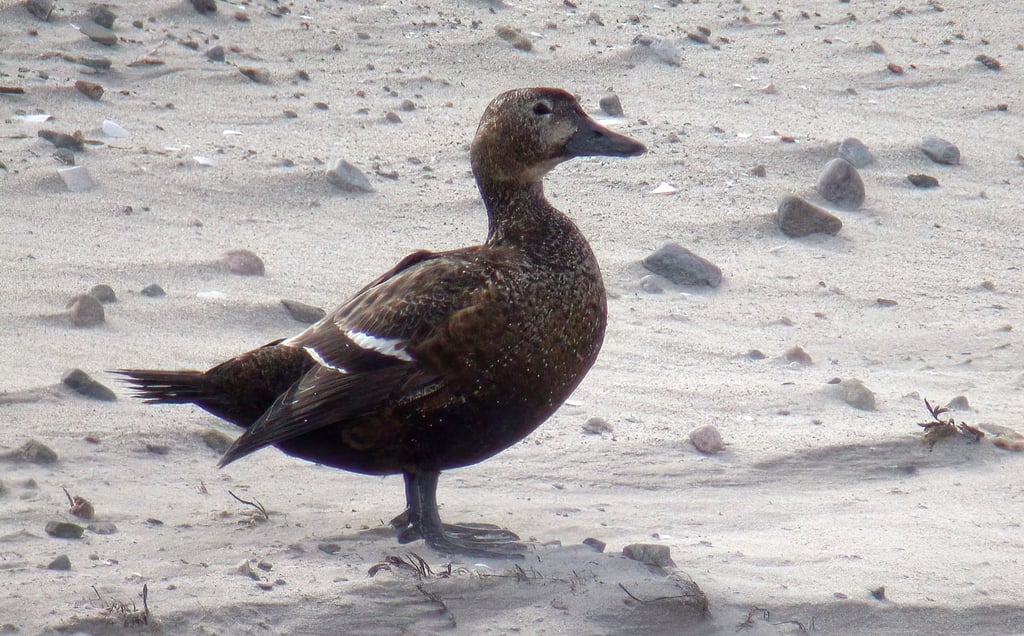 On our way towards the northeast we had a short stop at Ekkerøy. The site is known for its massive Kittiwake colony, but we stopped by a small satellite-colony closer to the road. At least 53 adult birds were hanging around this hill, but more than 10 000 pairs has bred in the main colony. A 15 kilometer drive later we reached Skallelv, where ten female plumaged Steller's Eiders were resting at the beach. Up to 10 000 Steller's Eiders has wintered in the region, but they are more scarce to see during summer. The number of wintering birds have decreased during the last decade.