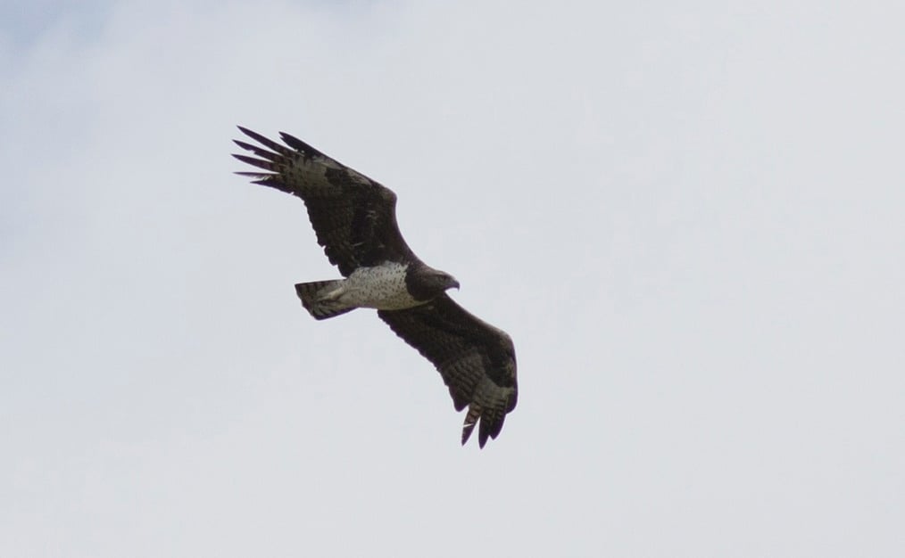 Birdingwise the day was naturally less productive, We did however see a few good species, and a total of about 35 identified during the day. One of the most numerous was wintering European Bee-eaters. I summed up a total of 80 of them during the day. An adult Martial Eagle (picture above) gave great views, and an adult African Marsh Harrier and a Rock Kestrel were new raptor species for me. Other noteworthy (new species for me) birds were a couple of Crested Guineafowls, African Pied Wagtail, a party of African Openbills, Southern Red (very common) and Yellow Bishop, the impressive Pin-tailed Whydah, Lilac-breasted Roller and quite a few Southern Fiscals.
